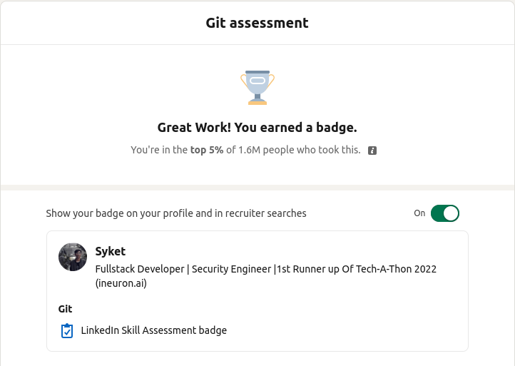 Top 5% globally in a GitHub developer ranking exam