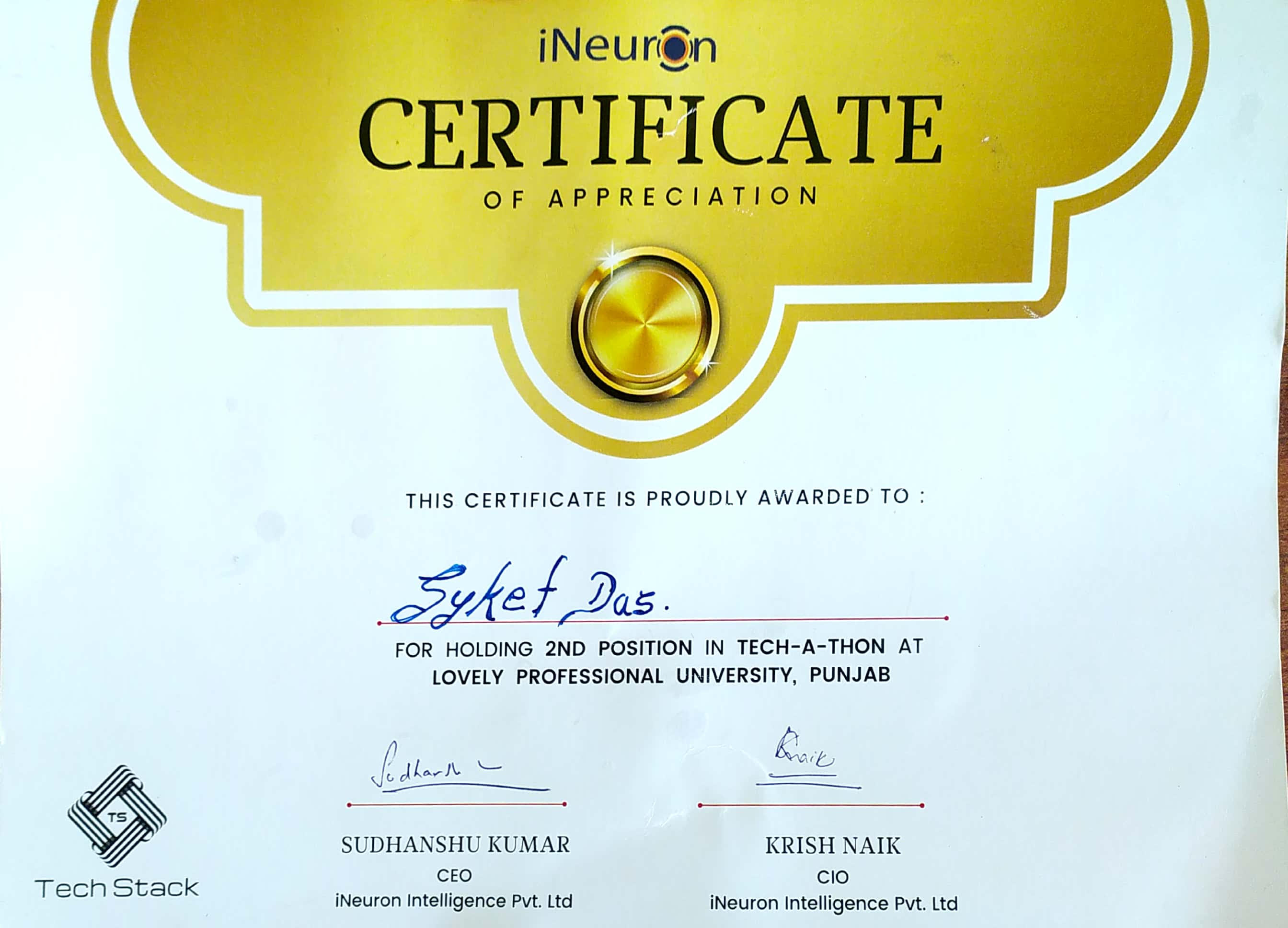 Runner-up in Tech-a-thon (300+ teams, iNeuron.ai at LPU)